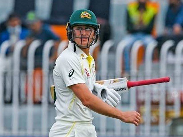 آسٹریلوی کھلاڑی نے پاکستانی اسپنر نعمان علی کی گیند پر رن بنانے کی کوشش کی لیکن فیلڈر ساجد خان نے وکٹ پر سیدھی گیند پھینک کر مارنوس لیبوشین کو آؤٹ کر دیا