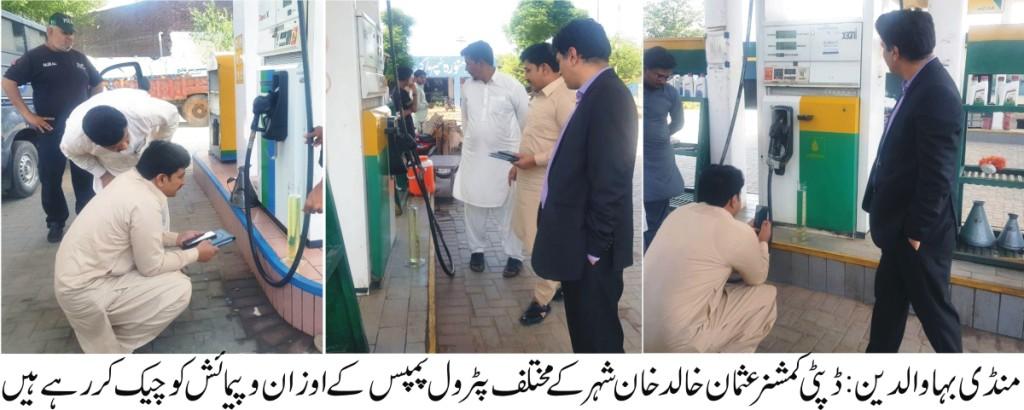 ڈپٹی کمشنر عثمان خالد خان نے ڈی او انڈسٹریز رانا محمد سعید کے ہمراہ ضلع کے مختلف پیٹرول پمپوں کو اچانک چیک کیا، انہوں نے پٹرول پمپس کی چیکنگ کے دوران معیار اور مقدار کو چیک کیا جو کہ پورے پائے گئے ۔