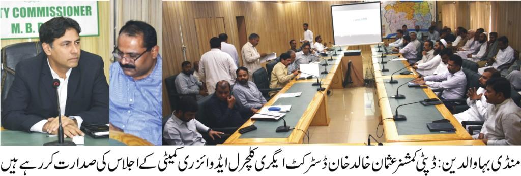ڈپٹی کمشنر عثمان خالد خان نے کہا کہ کسان کی خوشحالی کا مطلب ملک کی مجموعی ترقی ہے، کسان کی خوشحالی اور زرعی معیشت کی مضبوطی لازم وملزوم ہیں اور کسان کو سہولتیں فراہم کئے بغیر زرعی شعبے میں ترقی کا خواب شرمندہ تعبیر نہیں کیا جا سکتا۔ انہوں نے کہا کہ حکومت کسانوں کو معیاری کھادوں کی مقررہ قیمتوں پر فراہمی اور معیاری زرعی ادویات کی مقررہ قیمتوں پر فراہمی کے حوالے سے بہترین اقدامات اٹھا رہی ہے۔