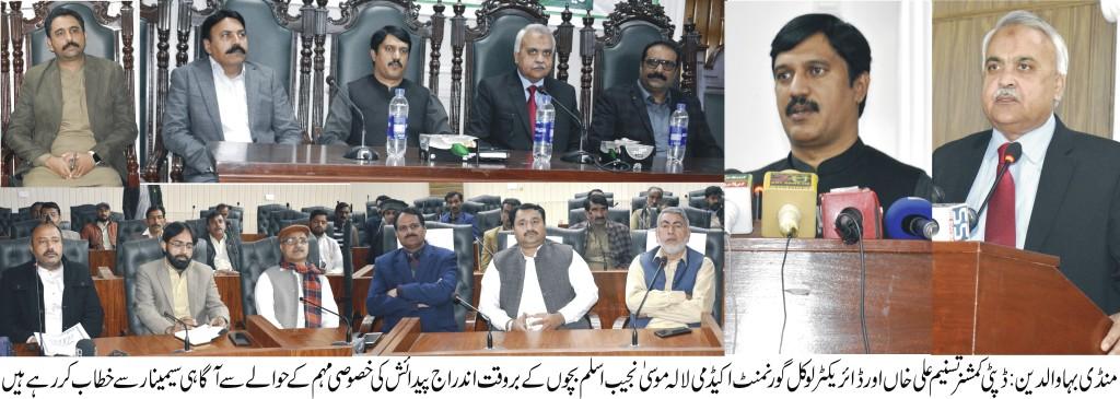 ڈائریکٹر لوکل گورنمنٹ اکیڈمی لالہ موسیٰ نجیب اسلم اور ڈائریکٹر لوکل گورنمنٹ گجرات ڈویژن محمود اقبال گوندل نے خطاب کرتے ہوئے کہاکہ حکومت نے اس مہم کے دوران سات سال تک کے بچوں کے پیدائش اندراج مفت کرنے کی یونین کونسل سیکرٹریز کوہدایت کی ہے۔حکومت کی ہدایت پر 11 دسمبر سے 20 دسمبر تک خصوصی مہم جاری رہے گی۔انہوں نے یونین کونسل سیکرٹریز کو ہدایت کی کہ اپنی اپنی یونین کونسلوں میں بچوں کے بروقت پیدائش اندارج کی آگاہی کے لئے اعلانات کرائیں۔ہر گاﺅں محلے میں بینرز آویزاں کئے جائیں اور پمفلٹس بھی تقسیم کئے جائیں۔